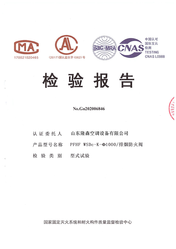 • 排煙防火閥-檢驗(yàn)報(bào)告