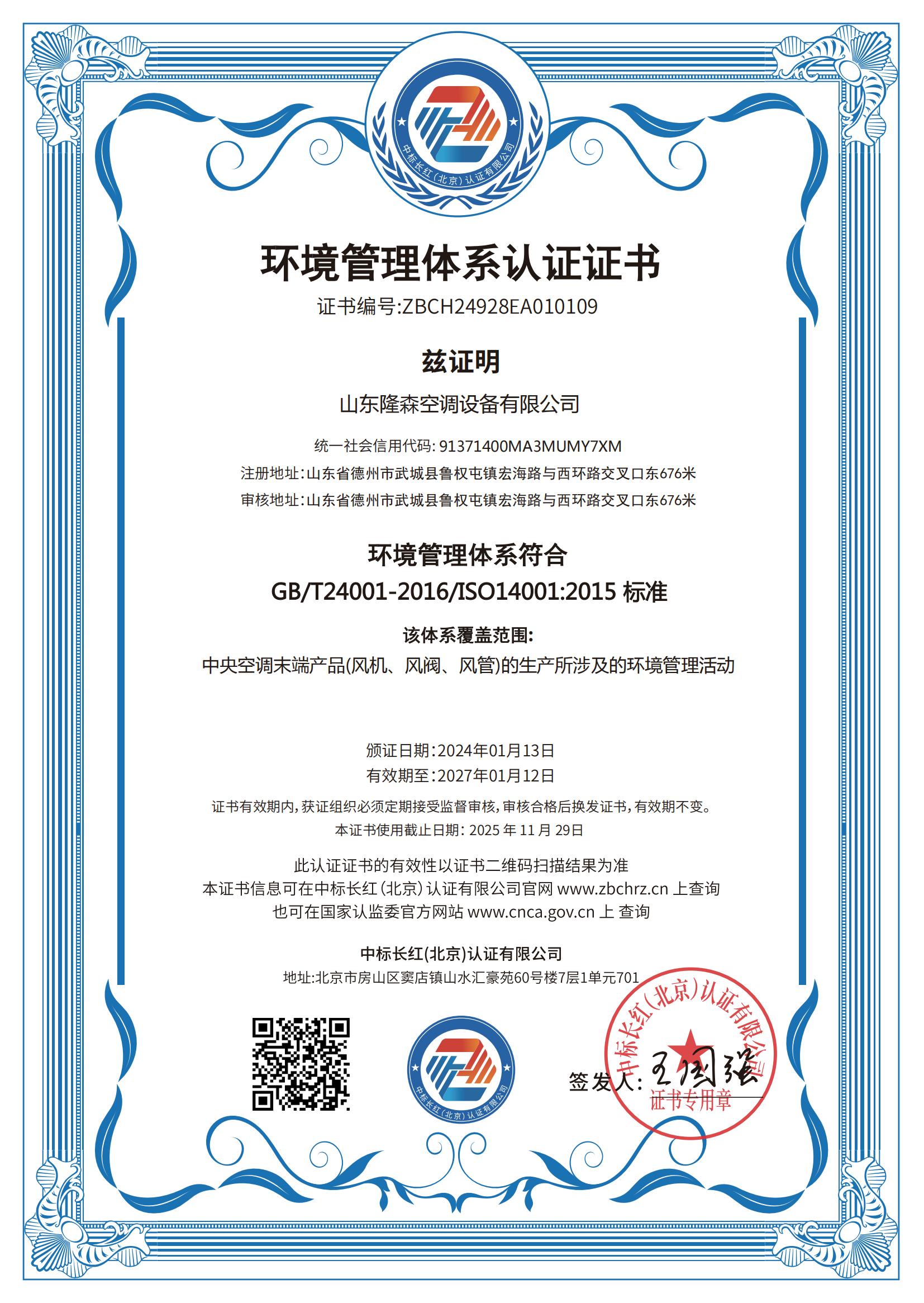 • 環(huán)境管理體系證證書