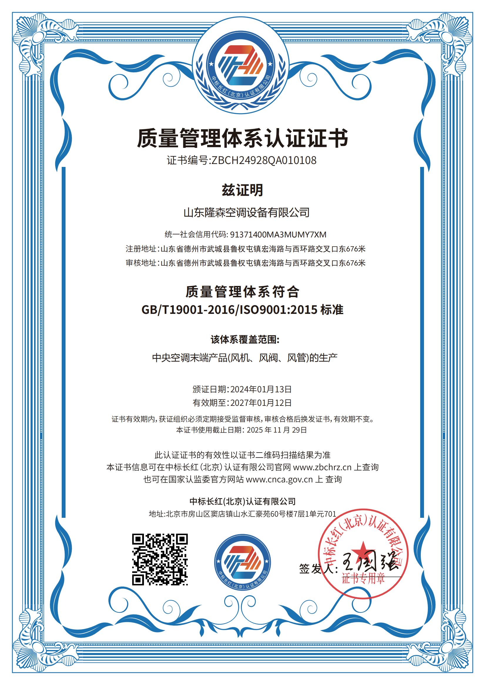 • 質(zhì)量管理體系證證書